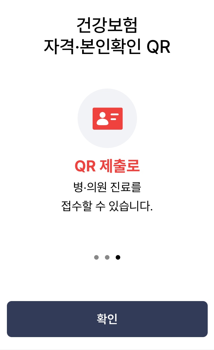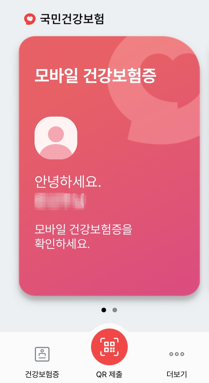 7. 지금부터는 모바일 건강보험증 앱으로 건강보험증을 확인하고 병원에서 큐알코드 제출하기를 바로 사용 할 수 있습니다.