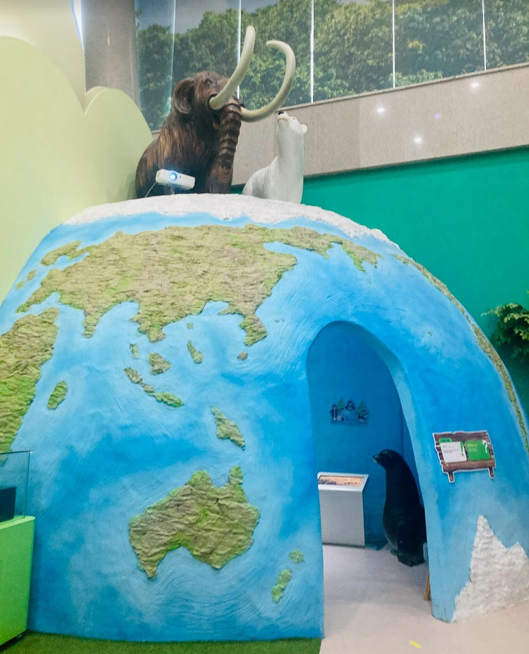 유모차, 장애인 추천코스로 1층 - 2층 엘리베이터 이용 - 3층 울산의 자연(좌측통로 이용) - 3,4층 생각의장(실내엘리베이터 이용) - 5층 탐구의 장 (실내엘리베이터이용) - 다시 1층으로 엘리베이터 이용 이렇게 안내되어 있어요. 층층마다 엘리베이터가 잘 되어 있어서 장애인과 유모차로 이용하기에도 괜찮은것 같았어요.