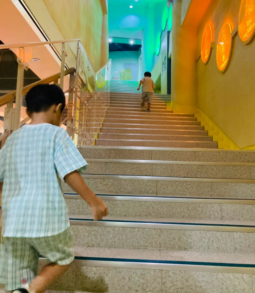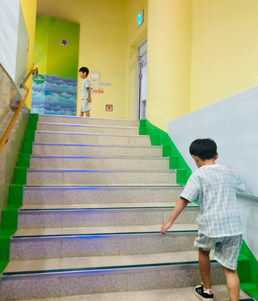유아의 경우에는 야외에 있는 발견의 장 - 1층 어린이과학체험장 - 2층유아과학체험 순서를 추천코스로 안내가 되어 있어요. 저희는 6세 유아로 유아 추천코스로 먼저 이동했어요. 결국엔 모든층을 다 관람했지만요.