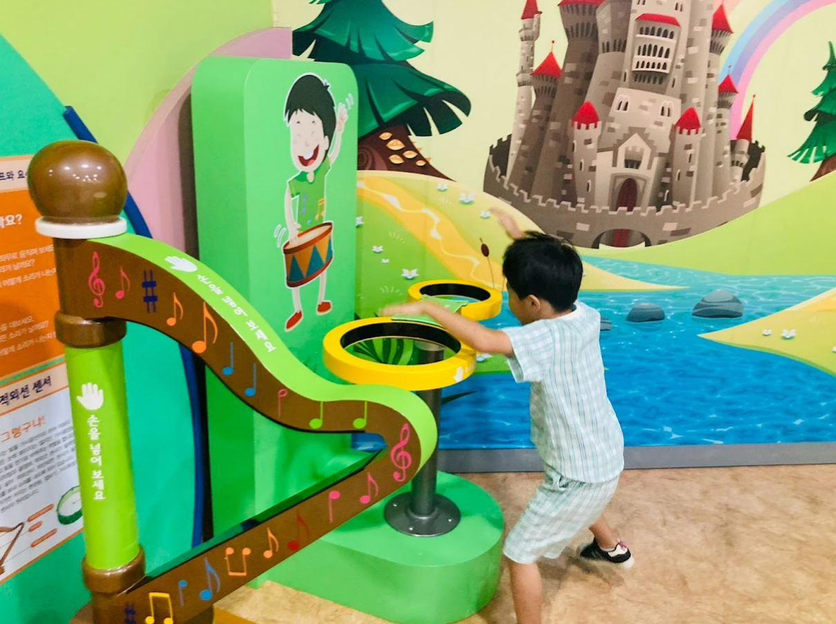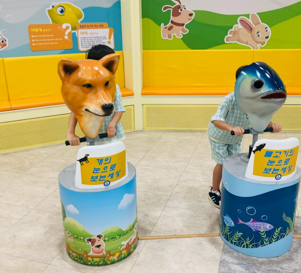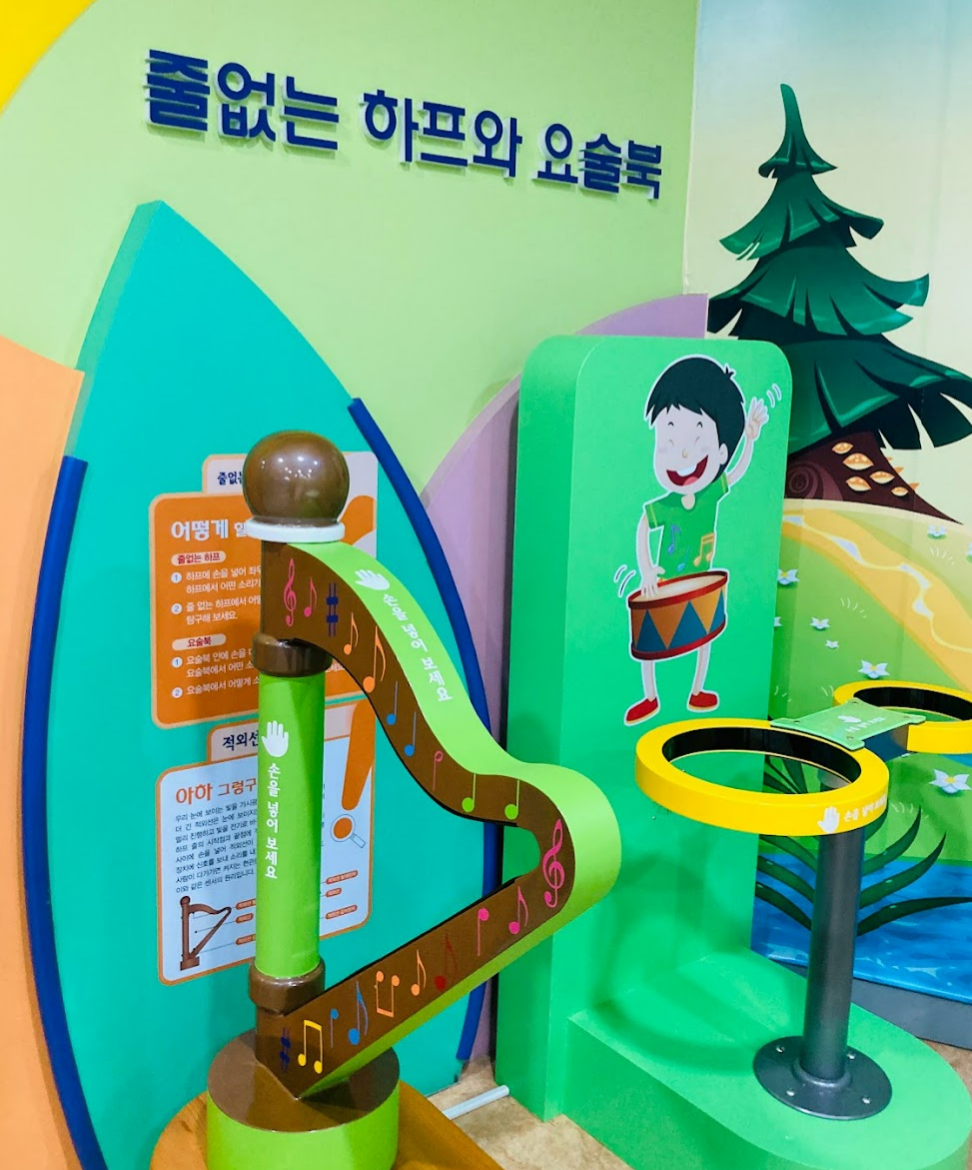 2층에 올라갔더니 로봇물고기가 반겨주었어요. 아이들이 가지고 놀 수 있는 것들이 있고 다양한 놀이들이 있었어요. 줄없는 하프와 요술북은 저도 진짜 신기했어요.