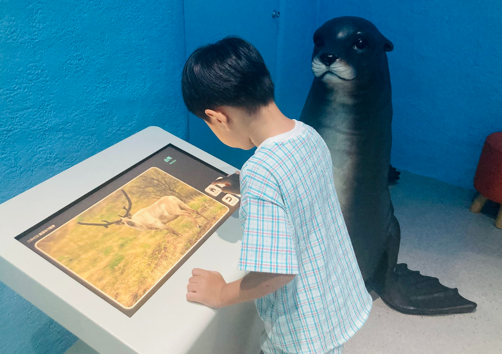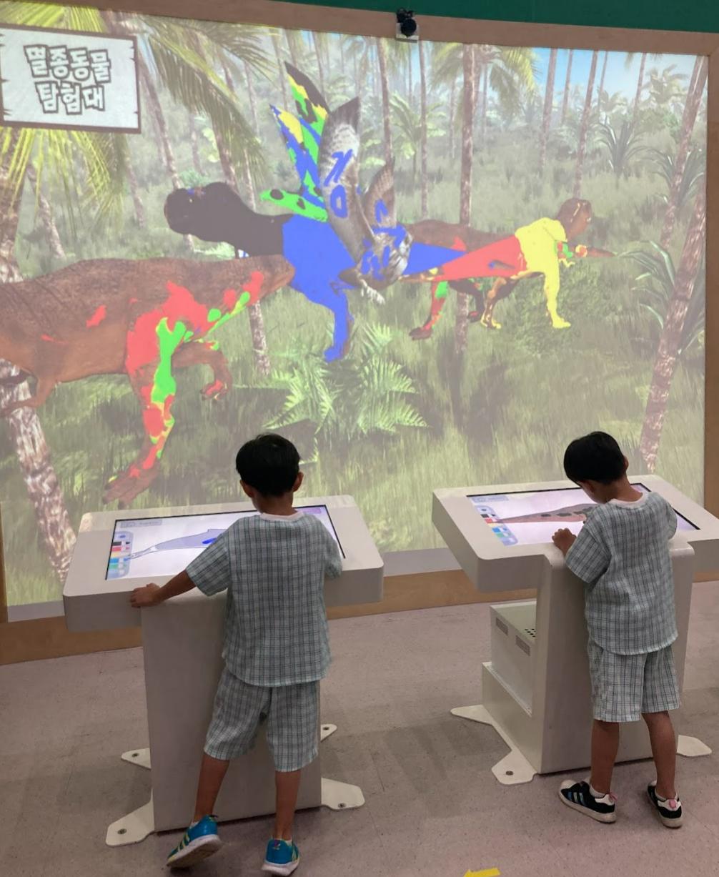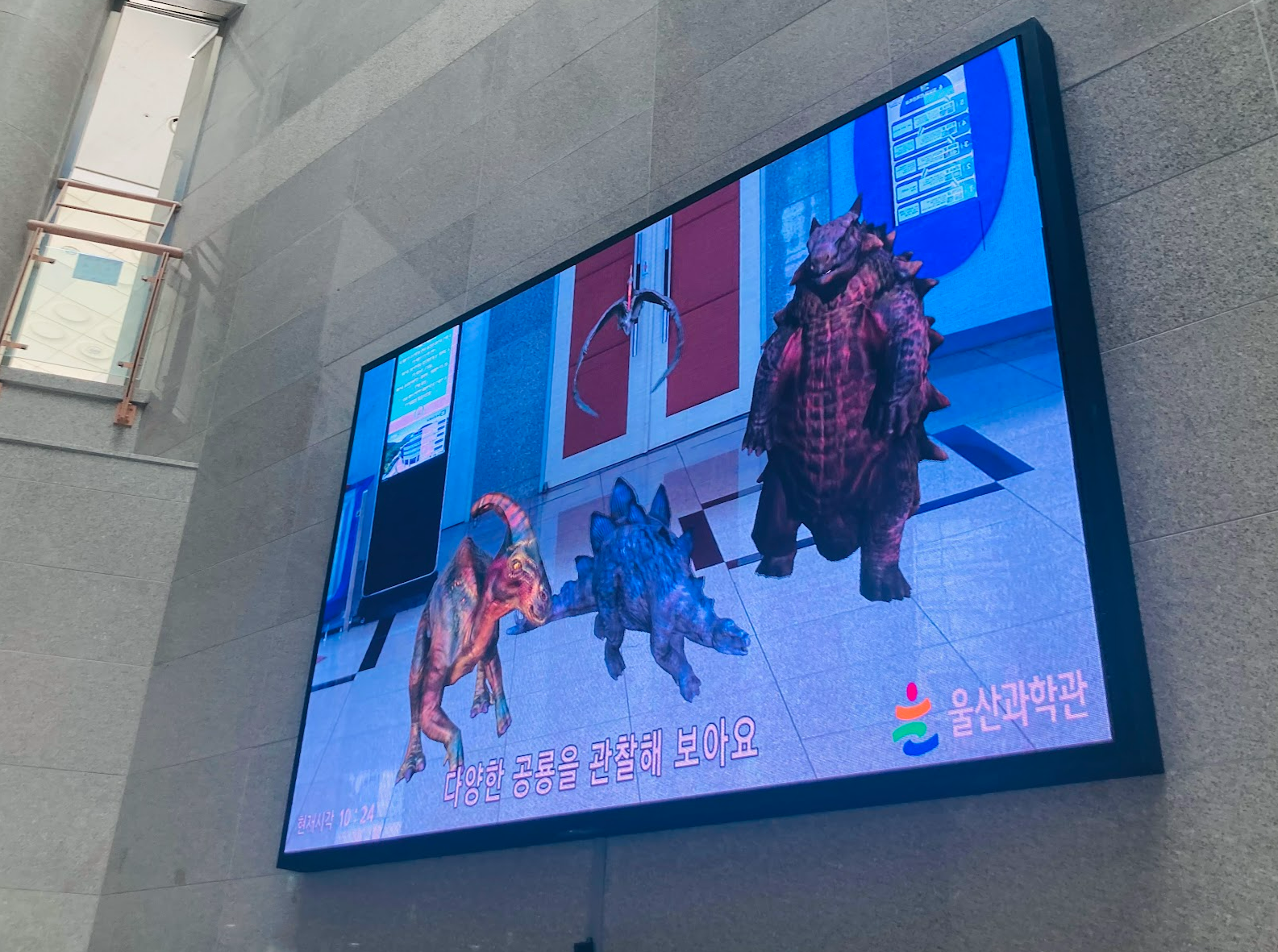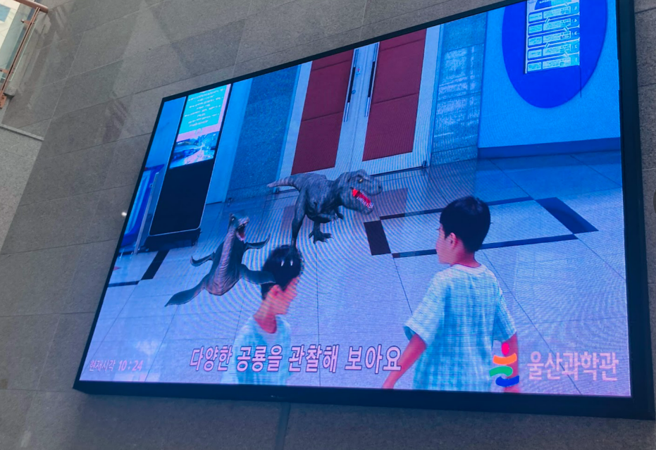 울산과학관이라서 그런지 로비부터 신기했어요. 화면에 공룡과 아이들 모습이 같이 나오니 엄청 신기해 하더라고요.
